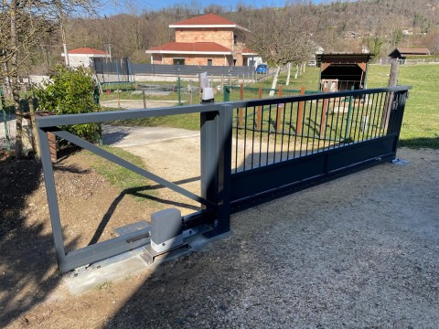 Pour ce chantier, on a fabriqué un portail coulissant autoportant en acier sur mesure dans nos ateliers à Izeaux.